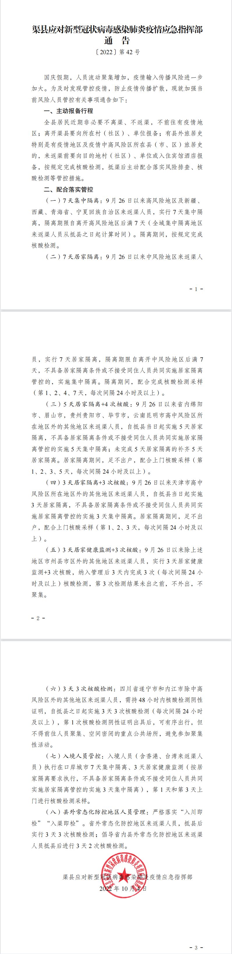 第42号!渠县疫情指挥部通告