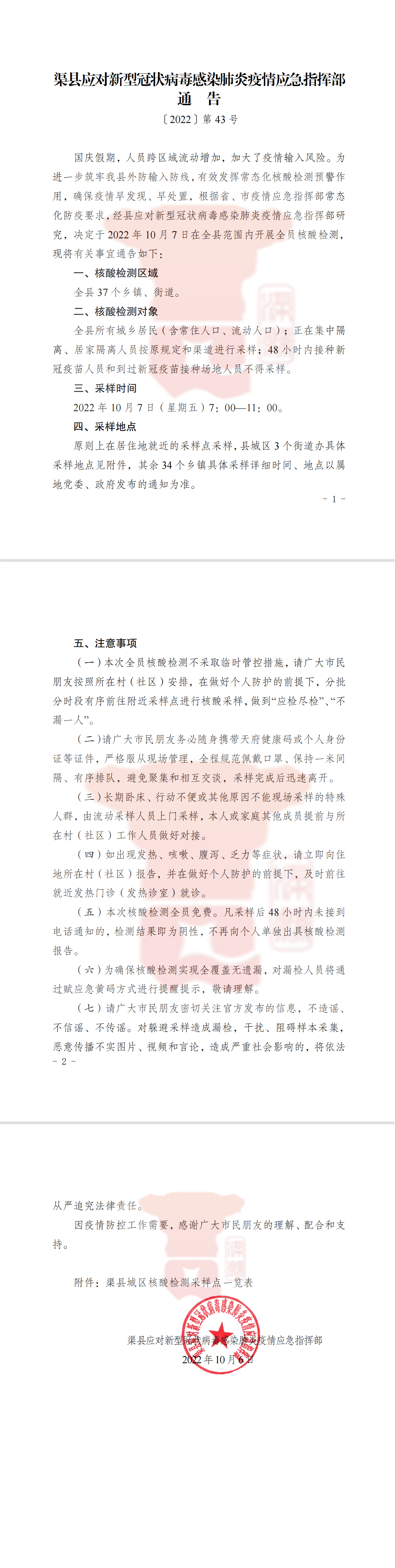第43号!渠县疫情指挥部关于开展全员核酸检测的通告 字体:大 小 打印 关闭本页 作者:渠县融媒体中心 来源:本站原创 发布时间:2022-10-06 15:56:51 点击数: 扫一扫下载渠县网APP 分享 分享到: