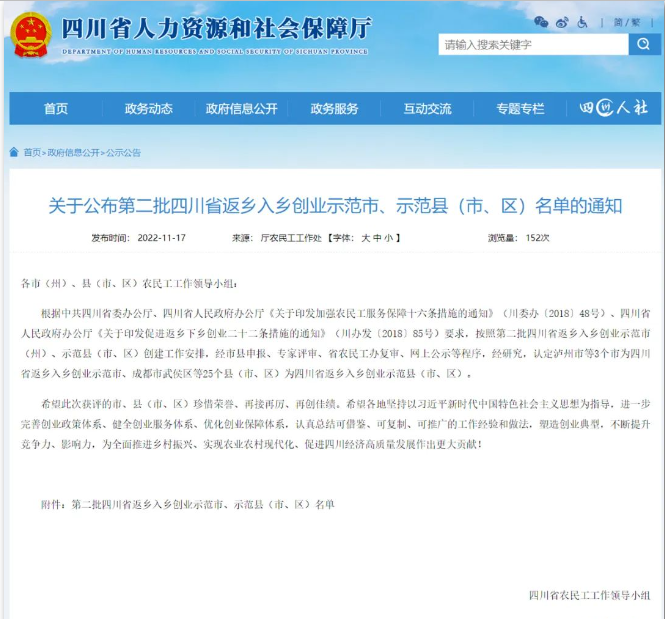 认定3个市为四川省返乡入乡创业示范市