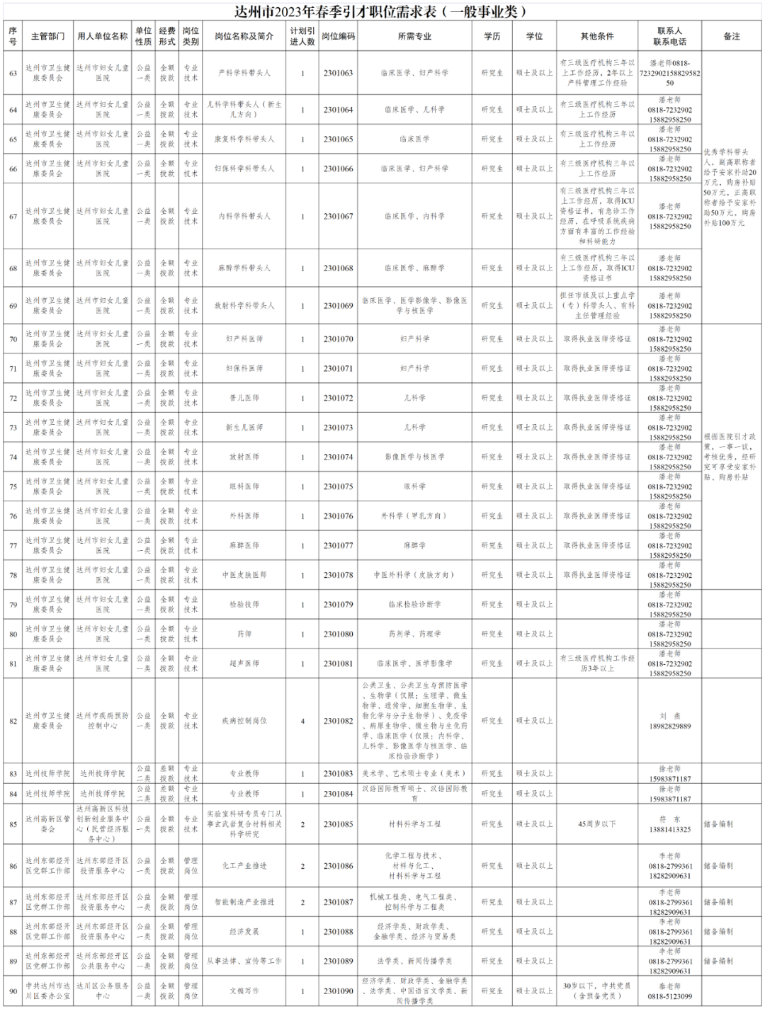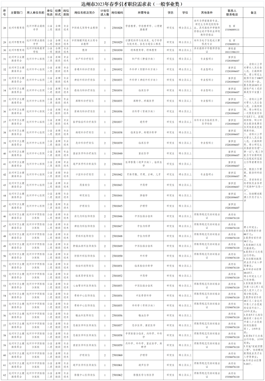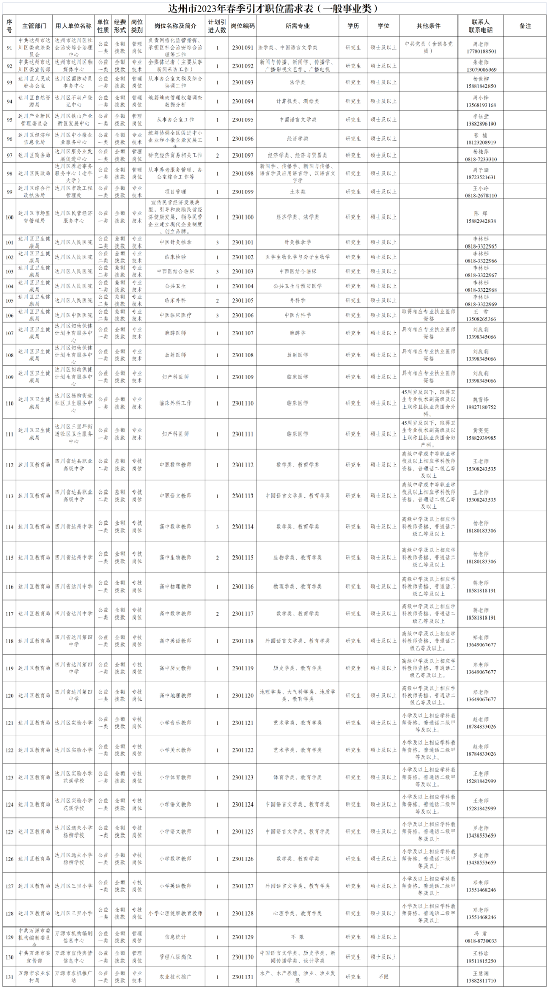 计划引进465人。其中,事业单位434人(含四川文理学院引进博士100人),企业31人(国有企业6人、民营企业25人)。查询网站:达州先锋网(http://www.dzdjw.gov.cn,下同)、达州人事考试网(http://www.dzrsks.com.cn,下同)。