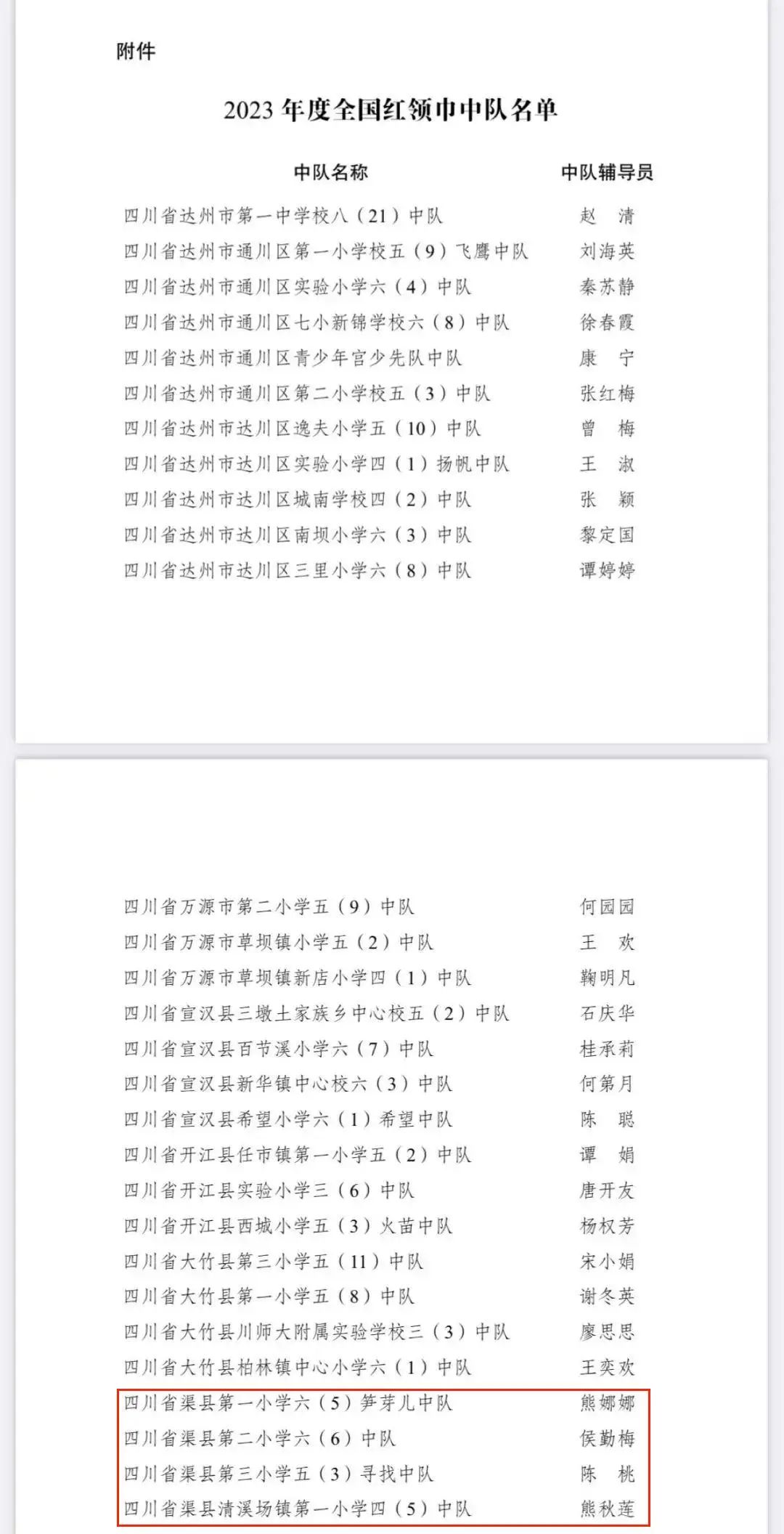 祝贺!渠县多个少先队集体获全国命名