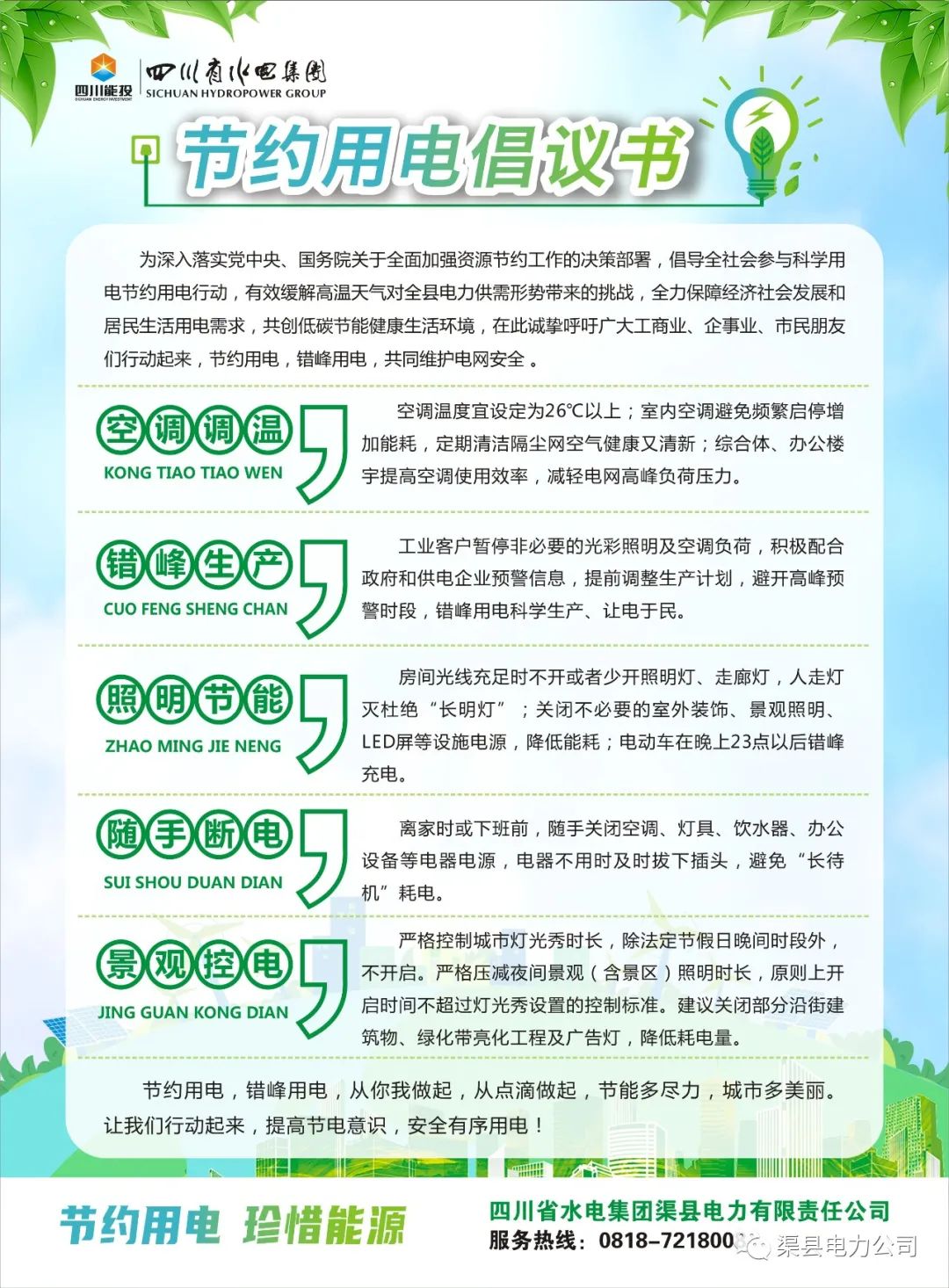 渠县电力公司发布节约用电倡议书…