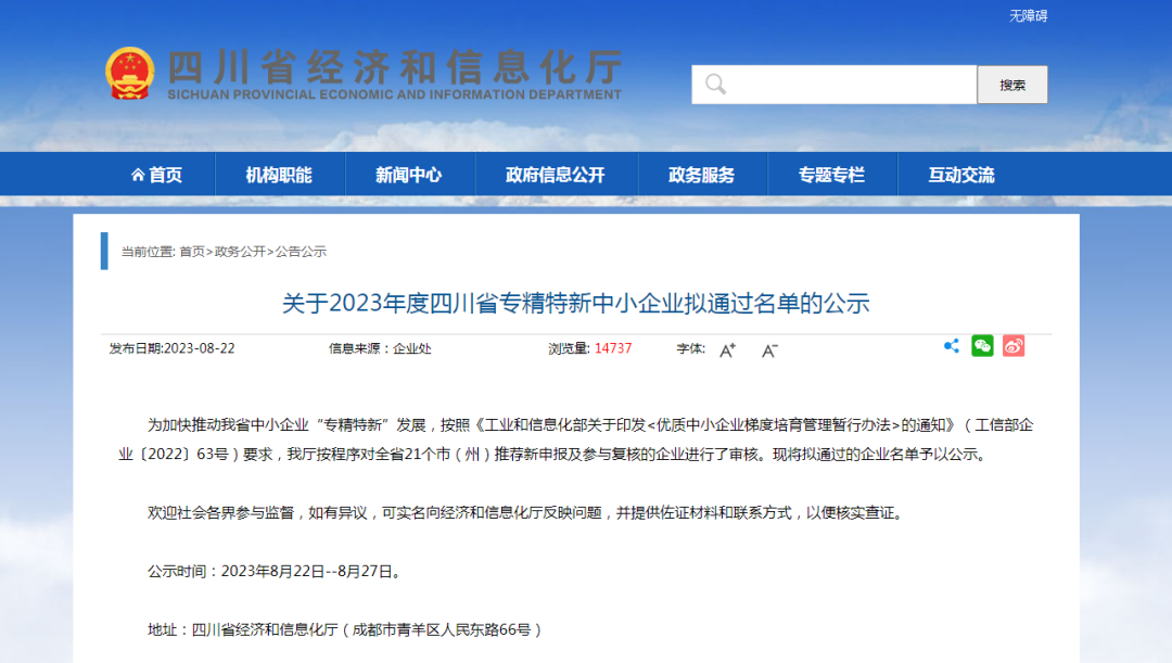 渠县3家企业入围!四川拟认定一批“专精特新” 字体:大 小 打印 关闭本页 作者:渠县融媒体中心 来源:四川省经济和信息化厅 发布时间:2023-08-27 19:48:42 点击数: 扫一扫下载渠县网APP 分享 分享到: 从四川省经济和信息化厅网站获悉为加快推动我省中小企业“专精特新”发展四川省经济和信息化厅按程序对全省21个市(州)推荐新申报及参与复核的企业进行了审核并于2023年8月21日至8月26日将拟通过的企业名单予以公示渠县3家企业入围一起来看看达州有哪些企业↓↓↓2023年度四川省专精特新中小企业拟通过名单新闻多一点引导中小企业走专精特新发展道路是巩固壮大实体经济的重要举措。近年来,我国大力推进中小企业特别是专精特新“小巨人”企业培育,从中央到地方,全局部署、靶向发力,作出一系列重要举措。截至目前,我国已累计培育了5批1.2万余家专精特新“小巨人”企业,带动地方培育9万多家专精特新中小企业,在产业链强链稳链固链中发挥重要作用。