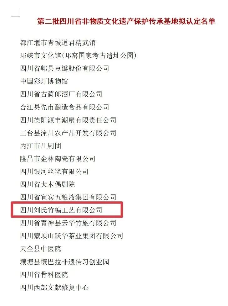四川刘氏竹编工艺有限公司前身系四川省渠县工艺美术厂。由中国竹工艺大师,中国民间工艺美术家,四川省工艺美术大师刘嘉峰先生创建于1980年。2001年更名为四川刘氏竹编工艺有限公司。