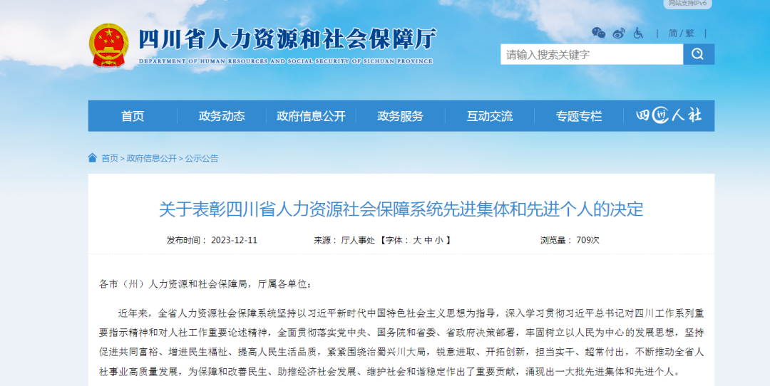 近日,四川省人力资源和社会保障厅发布《关于表彰四川省人力资源社会保障系统先进集体和先进个人的决定》,渠县王晶晶等同志获得“四川省人力资源社会保障系统先进个人”称号。