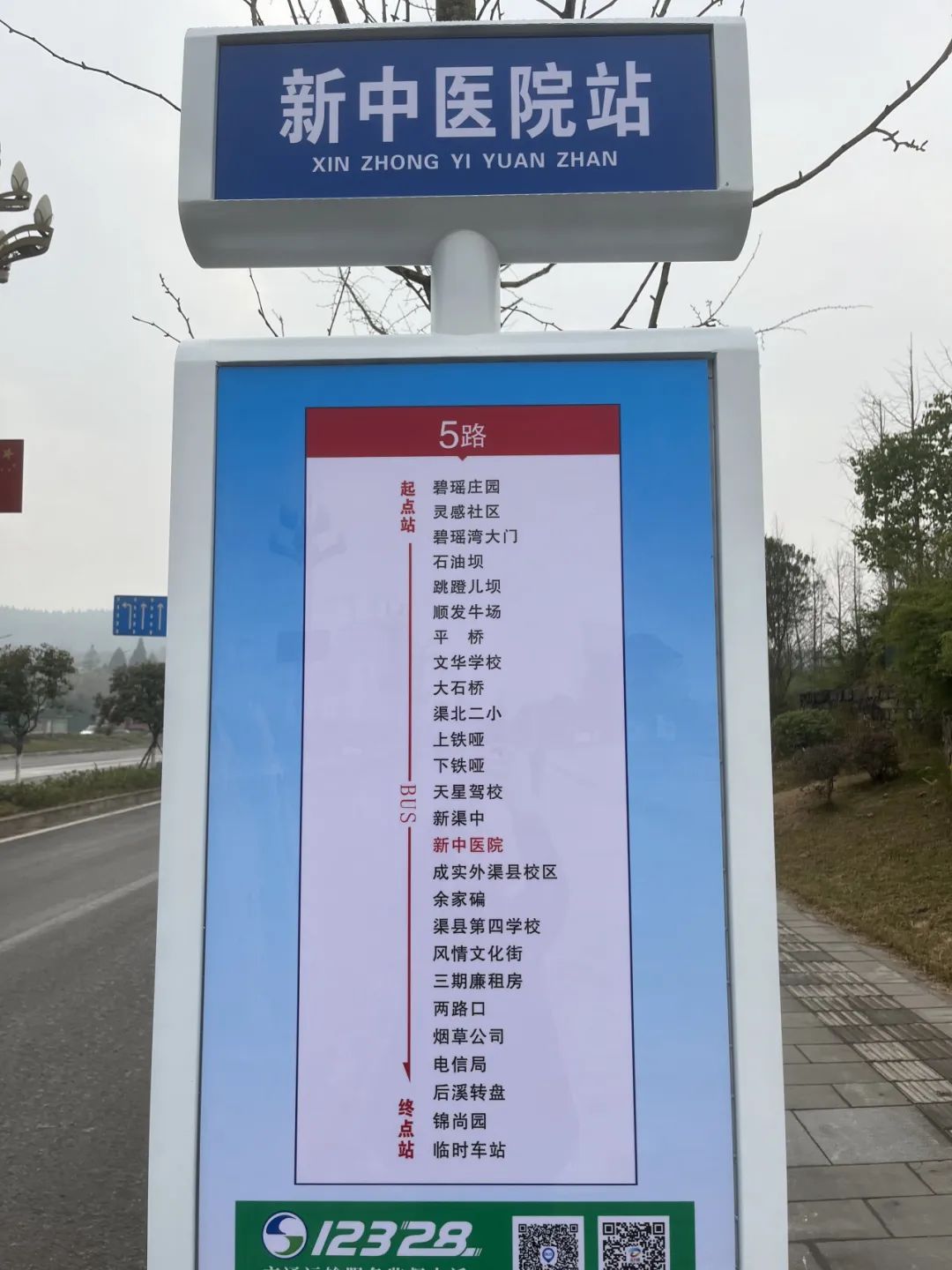 渠县中医院北城新院于2023年5月31日正式启用。为提升来院患者就医体验,彻底打通群众就医路程上的“最后一公里”,2024年元月14日起,渠县公交5号线新增“新中医院”站,站点设置在渠县中医院北城院区门口,线路具体情况如下:
