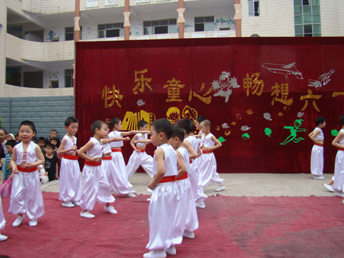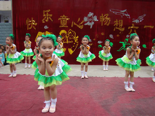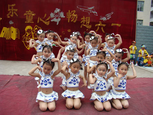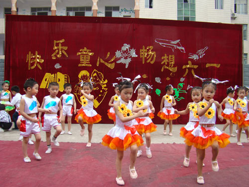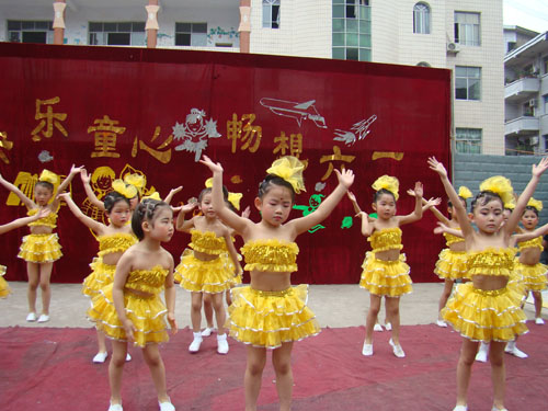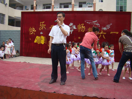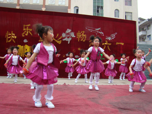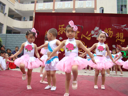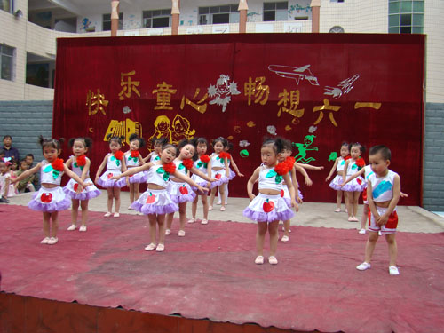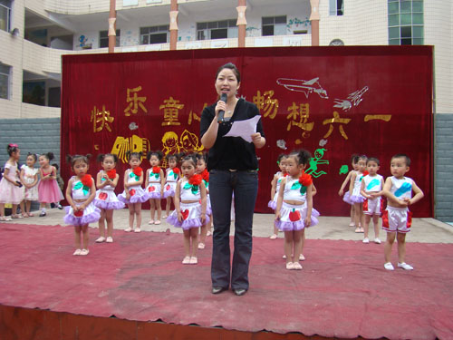 早上六点过,该校幼儿便在家长的带领下来到幼儿园,幼儿园的老师们则来得更早,拿出眉笔、脂粉、梳子等为幼儿化妆,梳头、扑粉、勾眉毛、喷啫喱、定发型忙得不亦乐乎;在学校后操场,接电源、铺地毯、拉幕布、调试音响,演出后勤组的同志也干得热火朝天。经过老师们两个余小时紧张忙碌的工作一切准备妥当,文艺演出于8:30准时拉开帷幕。