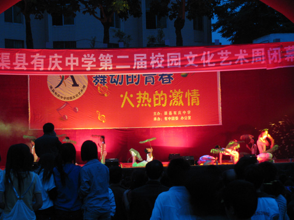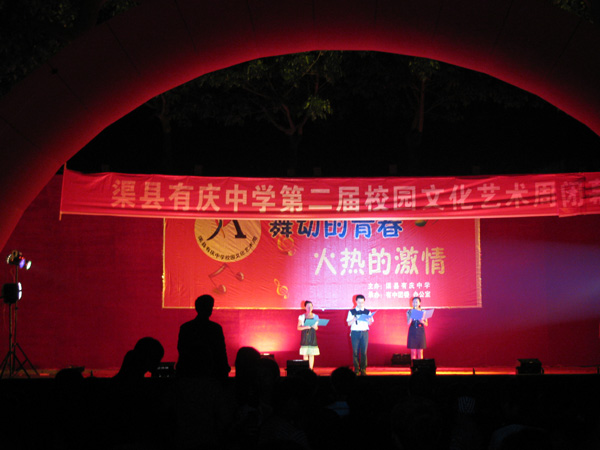 有庆中学:第二届校园文化艺术周隆重闭幕 字体:大 小 打印 关闭本页 作者: 来源:本站原创 发布时间:2010-06-01 10:28:26 点击数: 扫一扫下载渠县网APP 分享 分享到: 5月18日晚7点,有庆中学在校足球场隆重举行了第二届校园文化艺术周闭幕式。 闭幕式上,有中教师和各班学生精心准备的文艺节目一亮相,便博得了在场观众的热烈掌声。五彩的灯光、深情的歌声、优美的舞姿将整个校园融入了一片艺术的海洋。 此次活动,是有庆中学历史上第一次选在晚上举行。学校做了周密的安排,并得到了派出所的大力支持,确保了活动的安全和秩序的井然。(杨 勇)
