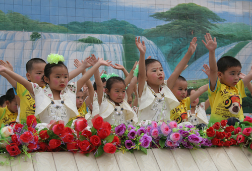 6月3日上午,李馥乡第一中心小学校内花团锦簇、彩旗飘扬,洋溢着欢乐的节日氛围,全校师生及观众1500余人欢聚在一起,共庆本届艺术节的召开。8时,升旗仪式开始后,一校校长雍兴瑜发表了热情洋溢的讲话,李馥乡副乡长李国芳同志致开幕词。接着在李乡长的宣布声中本届艺术节文艺演出拉开了帷幕!