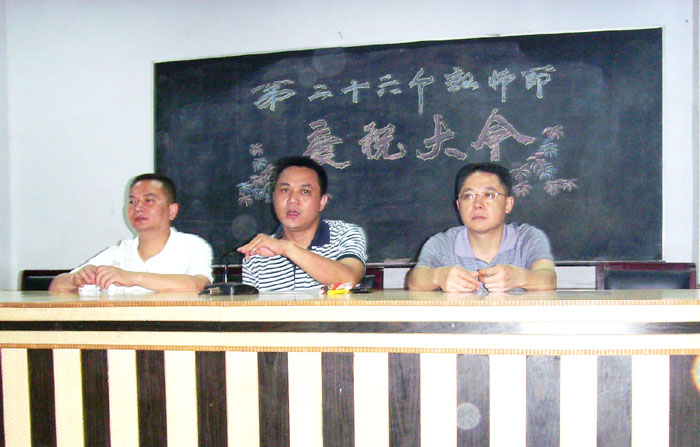 9月10日上午九点,全体教师欢聚在学校会议室,举行教师节庆祝大会。会上,校长何剑锋发表讲话,代表学校领导班子向全体教师致以节日的问候和崇高的敬意。何剑锋在充分肯定过去取得的成绩的基础上,向全体教师提出了新的要求,然后对获得县、镇优秀教师的老师表示热烈地祝贺,并且希望大家继往开来,为开创学校更美好的未来做出新的贡献。(肖 海)