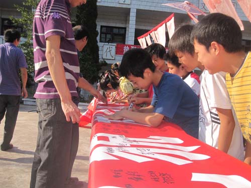 当天,该校学生和老师还在“讲礼貌、知礼仪、懂礼节,弘扬中华名族传统美德”的大型横幅上签名,并纷纷表示:“在校学习礼仪、走向社会实践礼仪、带动百万家庭传播礼仪”。(赵 葵)