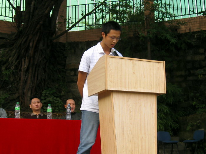 誓师大会由副校长贾其涛同志主持。学校副校长曾长和同志首先作了动员报告,明确了2009年高考目标,分析了实现目标的优势,提出了奖励措施。教师代表余兴明和学生代表何柯达也先后作了热情洋溢的发言。