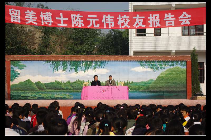 仲冬之时却艳阳高照,美丽的校园暖意浓浓,上午10点钟,陈博士在清溪中学校长杨长路的陪同下,步入操场中的主席台,期盼已久的师生全体起立,鼓掌欢迎。在杨校长热烈的欢迎辞后,陈博士的报告会开始了。