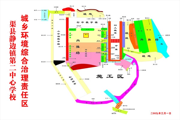 近日,学校行政一班人认真规划,将校区及周边区域进行了科学、合理的划分,将每一地段一一落实到人,实行责任包干。在此基础上,学校还绘制出了《渠县静边镇第二中心学校城乡环境综合治理责任区域划分图》公示于学校醒目处,出台了《渠县静边镇第二中心学校城乡环境综合治理过错责任追究办法》,全体师生既明确了责任,也进一步树立了了维护环境的环保意识和良好卫生习惯。同时,师生之间互相监督,表扬先进、问责后进,由于措施得力,我校的城乡环境综合治理工程取得了很好的效果。(刘 鑫)