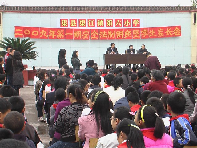 为进一步规范学生的行为,加强对学生的养成教育,增强师生的法制观念和法律意识。4月10日下午,渠江六小邀请了县教育局政策法规股喻雷同志来校作安全法制专题讲座。学校全体师生和学生家长在学校操场聆听了这一讲座。