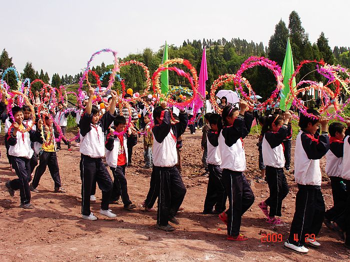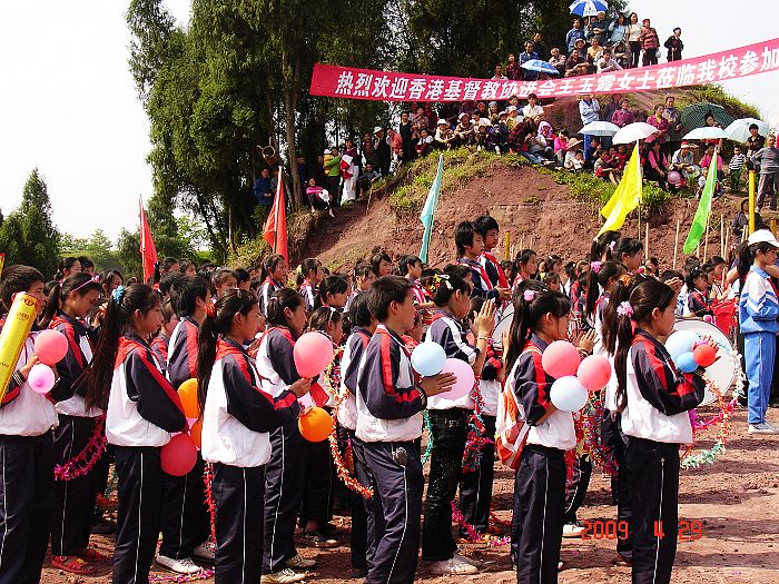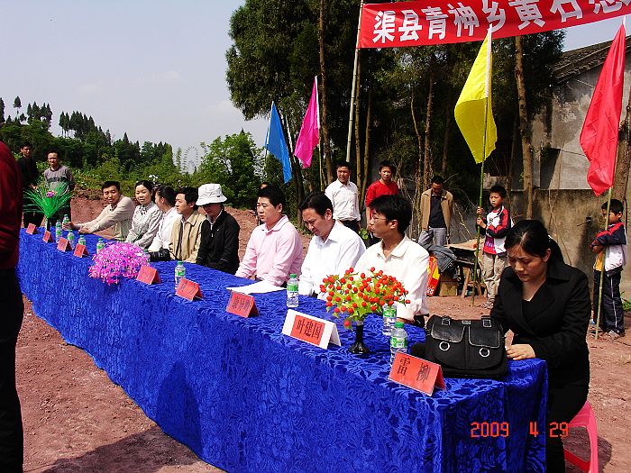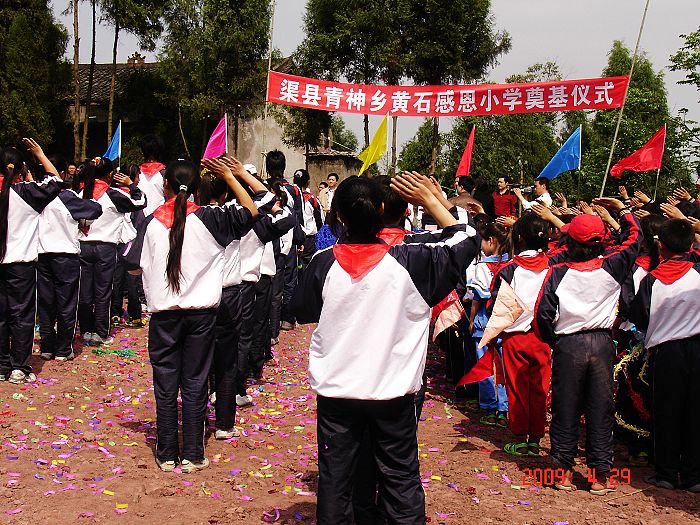 4月29日下午,渠县青神乡黄石村感恩小学200余名师生聚集在新破土的地坪上举行了隆重的教学楼奠基仪式。香港千峰塑料企业有限公司代表、基督教协进会王玉霞女士,省侨办国内处叶黎黎女士,市县侨办、县教育局领导及青神乡党委、政府领导参加了奠基仪式。