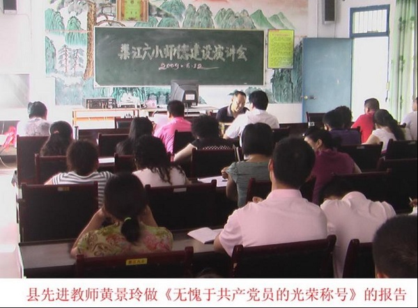6月15日上午,渠江六小的师德标兵,学校历届市、县级优秀教师在学校会议室给全校教师介绍了他们的事迹。3位报告者以自己真实感人的先进事迹,深深地打动着到场的每一位听众。潘明芳老师用“爱”书写师德;黄景玲老师“无愧于共产党员的光荣称号”;蒋晓莉老师“让青春焕发着光华”。他们的精彩演讲博得了同事们的阵阵掌声。报告会结束后,六小老师表示:一定要忠诚党的教育事业,做一名人民满意的教师。(刘凯林 代建)