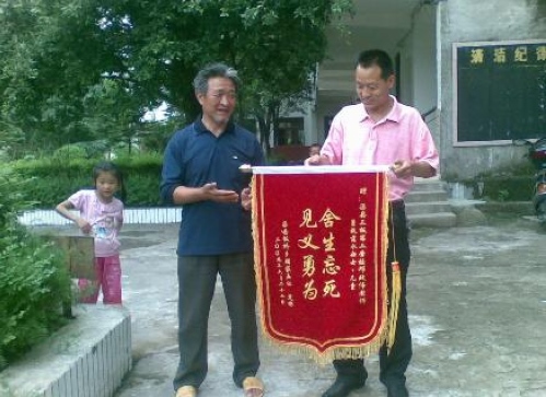 6月22日上午,家住渠县板桥乡曹家村五组的楚家新老人将一面“舍生忘死、见义勇为”的锦旗送到了学校,对学校邓正炜老师的勇救其落水的三岁的孙儿的行为给予万分的感激。