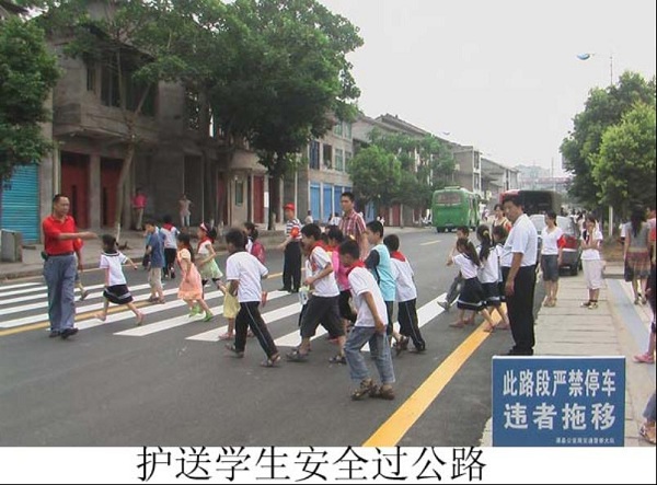 此外,该校还要求值日教师每天在放学时到大门处值勤,值日教师协助学校保卫科老师护送学生横过马路。由于学校紧邻“318”国道,学生上学、放学都存在有一定的安全隐患。值日学生和值日教师在校门口为师生服务规范了学校管理,做到了安全提示,警钟长鸣。(刘凯林 代建)