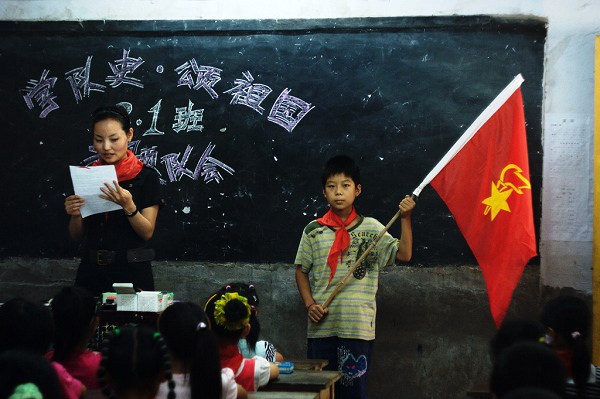 渠县三汇镇一小:喜迎建国六十年 主题队会添异彩