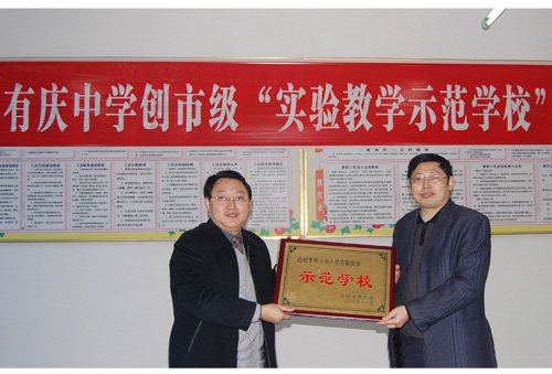 下午两点钟,验收汇报会在学校工会会议室召开。与会人员首先听取了学校校长黄欣同志所做的汇报,汇报中,黄校长全面介绍了学校的教育教学情况,特别是实验教学和特长生培训的开展情况以及所取得的成绩。市技装所何主任、 赵 老师、范主任等在充分肯定学校成绩的同时对学校的实验设备和操作管理提出了宝贵的意见。刘力副局长在讲话中对市技装所几位领导的到来表示热烈欢迎,对学校所做的大量工作和取得的成绩进行了肯定和祝贺,并要求学校在今后还要进一步加强管理,取得更好的成绩。市技装所李所长对学校的申报工作进行了总结发言,他肯定了学校所做的努力和目前已经取得的较好成绩,对学校的教育教学工作尤其是实验教学工作提出了建设性的意见,希望学校借助创建市级“实验教学示范学校”这一平台,继续发扬成绩,取得突破,为渠县的教育事业做出更大的贡献。最后,李所长代表市教育局评估验收组宣布有庆中学通过市级“实验教学示范学校”验收,并为学校进行授牌。