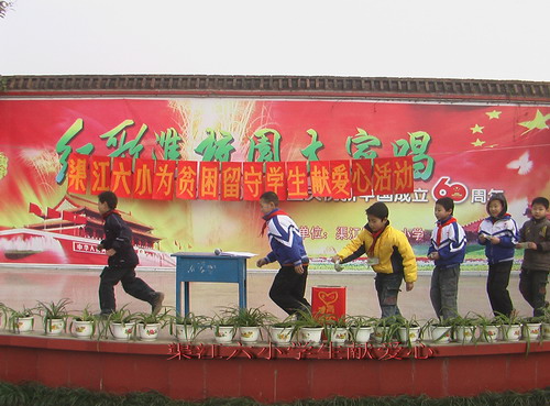 渠江六小开展向贫困留守学生献爱心活动 字体:大 小 打印 关闭本页 作者: 来源:本站原创 发布时间:2010-01-14 10:56:48 点击数: 扫一扫下载渠县网APP 分享 分享到: 2010年新年伊始,万象更新。渠江六小德育处、少先队大队部根据学校实际情况经过慎重考虑,向全体师生发出 “向贫困留守学生献爱心”的倡议,得到了广大师生的积极支持。1月14日上午,在渠江六小校园内开展了隆重的捐款仪式:师生们纷纷把10元、5元、2元、1元的“爱心”投入捐款箱。最后学校把全体师生的“爱心”交到了生活贫困的留守学生们手中,取得了良好的社会效益,获得了社会人士的高度认可。(代 建)