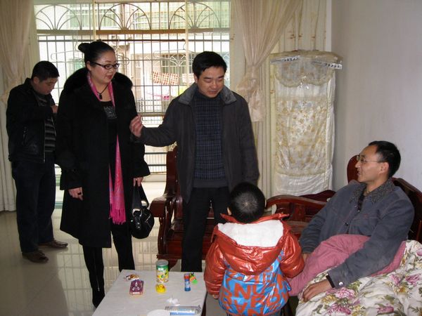 2月10日下午,县教育局副局长邹旭、刘桂芳率教育局安办主任胡健、岩峰片区主任干事符志勇、水口二校领导一行人带上慰问金21100元,亲切慰问了因车祸三次手术花费近25万元的郑君伟老师,因病致困的退休教师李万皆、蒲登政老师等,向他们送去新春的问候与祝福。