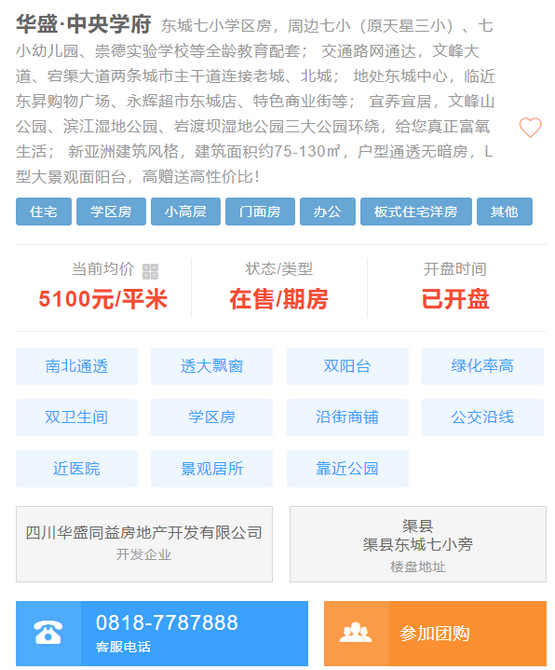 华盛·中央学府是四川华盛同益房地产开发有限公司首秀巨作,公司隶属渠县国资委,品质有保证。项目位于渠县东城中心区域,紧邻城市主干道文峰大道、宕渠大道,交通网路四横五纵,畅达渠县老城、北城。项目紧邻渠江七小(原天星三小)及幼儿园,临近培乐萌幼儿园、崇德实验中小学、艺峰双语学校,从幼儿园到高中一站式优质教育资源。项目优质宜居,文峰公园、滨江湿地公园近在咫尺;东晟购物广场、特色商业街举步即达,真正做到繁华与宁静共享。