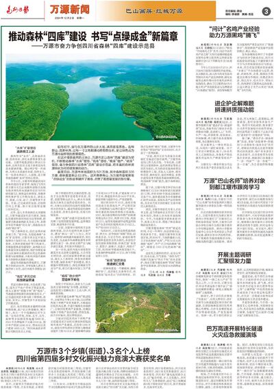 12月5日,万源市委书记蒋波主持召开全市森林“四库”工作专题会。他强调,要深入践行“绿水青山就是金山银山”理念,聚力做好生态价值转化文章,积极推进森林“四库”建设,努力实现“蓄水于山”“藏粮于林”“摇钱于树”“固碳于木”,为奋力谱写中国式现代化四川新篇章作出新的更大贡献。