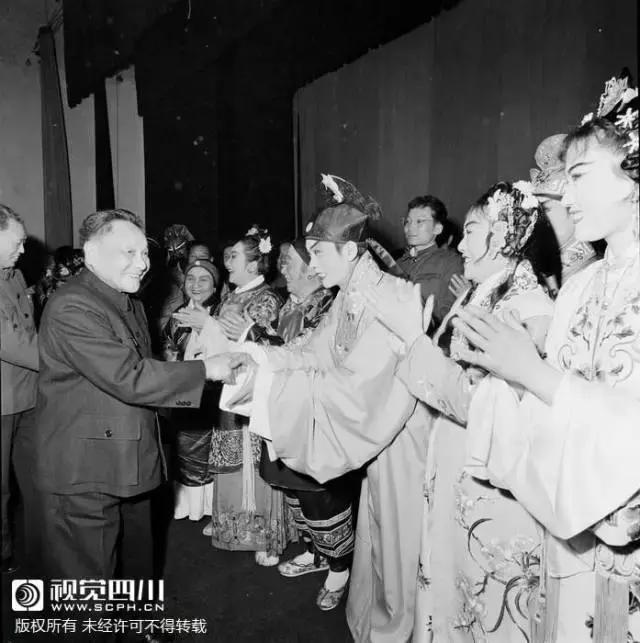 1978年2月,邓小平在成都接见川剧演员。(图片来源:四川日报历史资料)