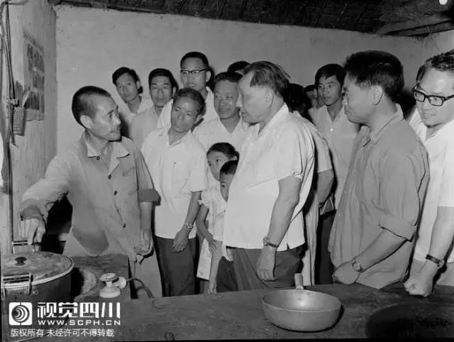 1980年7月,邓小平在成都簇桥农家了解沼气使用情况。(图片来源:四川日报历史资料)