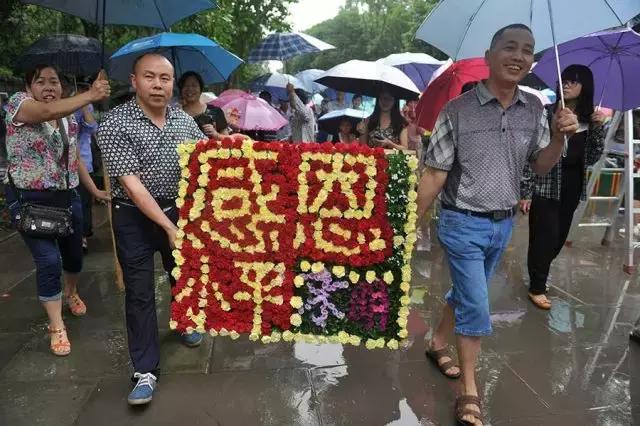 2014年8月22日,广安市群众抬着摆出“感恩小平”字样的花牌,到协兴镇小平故里纪念邓小平诞辰110周年。 四川日报记者 何海洋 摄