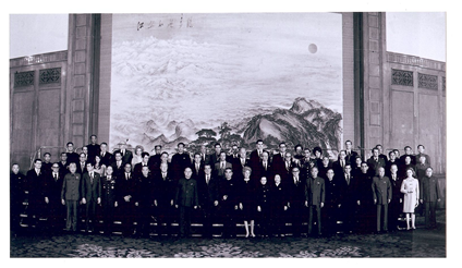1972年2月21日周总理在人民大会堂设宴欢迎美国总统尼克松(后三排左六为父亲)
