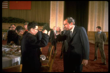 1972年2月21日父亲出席欢迎尼克松总统的国宴(左一为父亲)