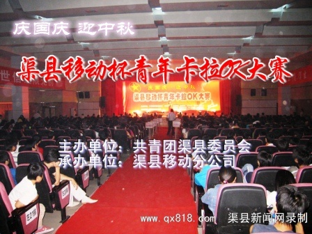 [视频新闻]渠县移动与共青团携手为国庆、中秋献礼 字体:大 小 打印 关闭本页 作者: 来源:本站原创 发布时间:2006-09-27 02:02:41 点击数: 扫一扫下载渠县网APP 分享 分享到: 8月26日下午,在渠县职中会议室举行了“庆国庆、迎中秋”渠县移动杯卡拉OK大赛,20多个参赛选手登台献艺,为中华人民国和国的57岁生日献上了一顿丰盛的文化大餐。本次活动是由共青团渠县县委主办,渠县移动分公司承办,渠县教育局等10来个单位协办。