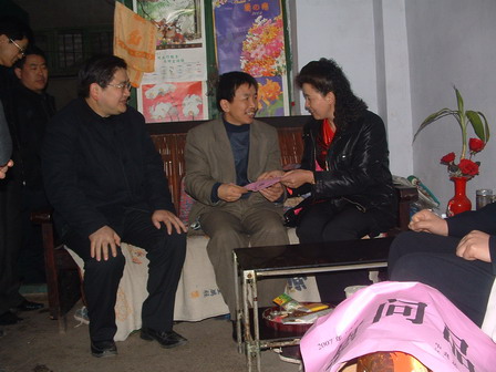 康莲英看望慰问渠县退休干部和困难群众(图片) 字体:大 小 打印 关闭本页 作者: 来源:本站原创 发布时间:2006-12-31 16:33:55 点击数: 扫一扫下载渠县网APP 分享 分享到: 在元旦即将到来之际,12月30日下午,市委副书记康莲英在渠县县委书记向此德、县委副书记唐廷教等县领导陪同下,代表市委、市政府看望慰问了渠县部份退休干部和困难群众,把党和政府的深切关怀送到了干部、群众的心坎上。图为市委副书记康莲英(右一)看望慰问渠县百货公司下岗困难职工蓝学书时的情景。(记者 吴涛 摄)