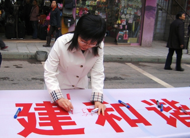 启动仪式最后举行了万民签字活动,图为县委常委、宣传部长在签名。