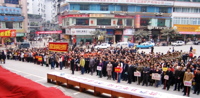 “营造卫生环境,共建和谐渠县”万名签字仪式,右三为副县长张弟平。