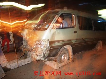 这辆来自绵阳的面包车传闻是到张家界旅游,驾乘人员一共7人,途经渠县原准备到政府招待所住宿,后又将下榻的地点改为财政宾馆,于是上演了上面的一幕。据目睹车祸现场的市民介绍,这辆川B牌照的面包车从中十字方向快速开来,进入中十字至老邮电局路段后不但没有减速,反而加油快速通过,车子从一骑摩托的市民身边几十公分以外擦身而过,车子引擎发出高速转动的轰鸣声。紧接着 听见“砰、砰、砰”一连串撞击,面包车闪电般撞到一辆货车尾部,然后偏转方向,撞向停靠在老邮电局门口的海事局的一辆长安车上,推动着长安车撞开隔离步行街的水泥墩,继续向前,撞倒两名在石梯上面卖甘蔗的老妇人后,冲下石梯,最后撞在今宵夜总会门前的台阶上才停了下来。车祸发生后,川B牌照面包车上驾乘人员无人伤亡,被撞人员中有一人当场死亡,四人受伤(其中一人情势危急)。