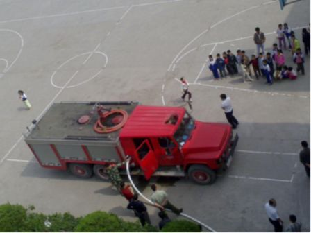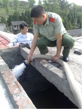 4月16日上午10时,渠县武警消防中队杨队长所率官兵和教育局勤管股唐洪波股长一行六人开着消防车给渠县水口乡第二中心学校送水两车,解决该校1000余师生饮水困难。