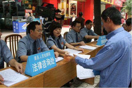 县检察院开展渎职侵权宣传月、举报宣传周活动 字体:大 小 打印 关闭本页 作者: 来源:本站原创 发布时间:2007-06-12 08:48:18 点击数: 扫一扫下载渠县网APP 分享 分享到: 为了维护国家法律正确、统一实施,保护人民,惩治犯罪,保障社会主义建设事业顺利进行,提高群众的法制意识,宣传检察职能。连日来,渠县人民检察院结合反渎职侵权宣传月、举报宣传周等活动,制定了“法治渠县百日宣传”活动方案,组建法制宣讲团,以开展送法进校园、进社区、、进企业、进农村、进机关为主要抓手,对不同层次、不同类别的人群进行法制教育,旨在提高他们知法、守法意识和运用法律武器维护自身合法权益的能力,受到了各界的赞誉和欢迎。图为副检察长严亨政、陈祝同志在接受群众法律咨询、解答法律问题的情景。(郭海清)