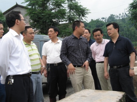 县委副书记、县长邓瑜华、县委常委副县长蔡文华、县委常委副县长田丰明视察灾情