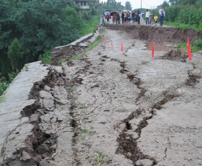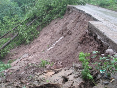 从6月16日开始,我县普降大到暴雨,造成山地滑坡、路基下陷、桥梁冲毁,全县交通设施损毁十分惨重。截止6月18日统计,全县交通设施损毁情况为:冲毁油路路面10.82km73478m2;冲毁桥梁1座,有3座桥梁受到不同程度的损坏;冲毁涵洞10道;冲毁挡土墙10处4580m3;冲毁水沟及路沿石141km;公路坍塌方35处13200m3,其它水毁损失50.27m3。直接经济损失550.044万元,加上5月暴雨损毁道路设施,共计767.8万元。灾情发生后,渠县交通局及时组织干部职工奔赴国省县道抢险救灾,排出险情,保证车辆安全通行。县交通局在资金十分紧张的情况下,已投入资金56.7万元用于抢险救灾。