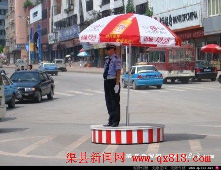 交警们顶着烈日,他们身着蓝色警服,头顶警帽,戴着墨镜,威武庄严,飒爽英姿。这一道靓丽的渠城风景线,引来了路人的注目和称赞,为渠城道路交通的畅通和安全做出了巨大贡献。