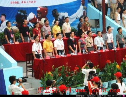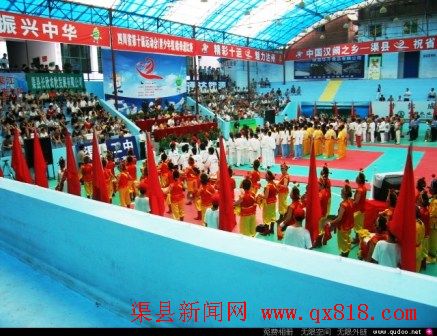 7月14日上午8时,四川省第十届运动会渠县赛区跆拳道比赛胜利开幕。来自30个市县的裁判、教练、运动员在渠江体育馆举行了隆重的开幕仪式。
