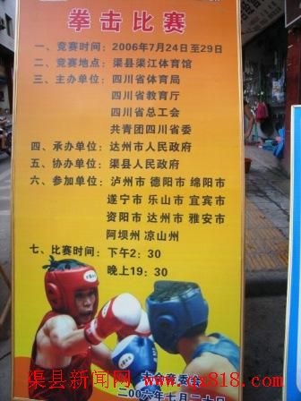 省十运会拳击赛在渠县开赛 字体:大 小 打印 关闭本页 作者: 来源:本站原创 发布时间:2006-07-26 00:03:29 点击数: 扫一扫下载渠县网APP 分享 分享到: 省十运会(娇子杯)拳击比赛昨天在渠县渠江体育馆开赛。在为期五天的比赛中,来自泸州、德阳、绵阳和东道主达州等地的11支代表队将为争夺16个级别的16枚金牌展开角逐。东道主达州代表队将参加16个级别的全部比赛。