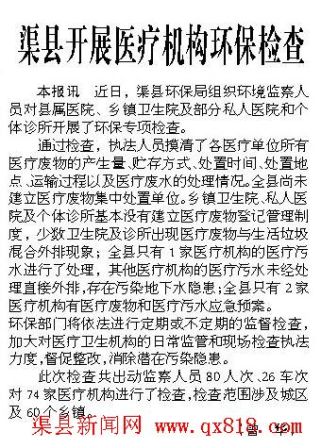 渠县开展医疗机构环保检查