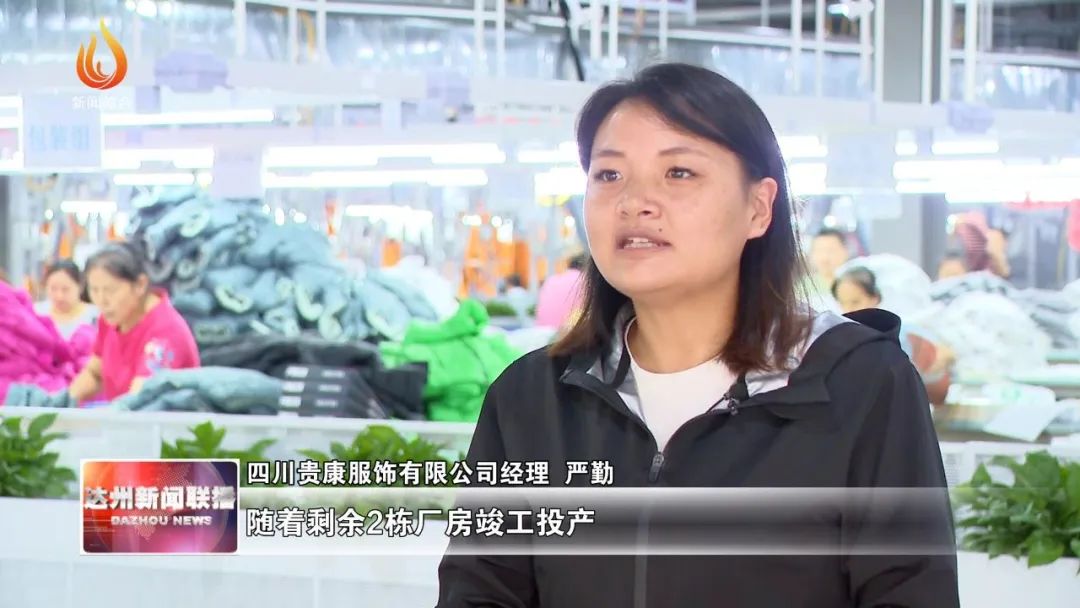 四川贵康服饰有限公司经理 严勤:今年7月份。我们一期2栋厂房已投产,单个厂房日均产能可以达1万8千件左右,随着剩余2栋厂房竣工投产,预计有48条流水线,日产能可以达到8万件左右。