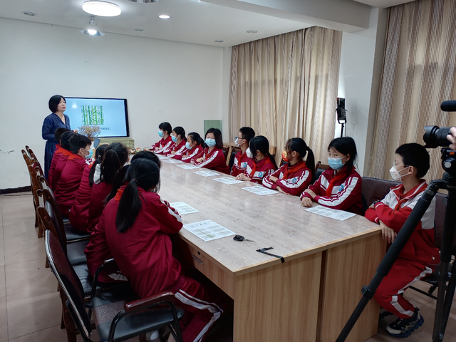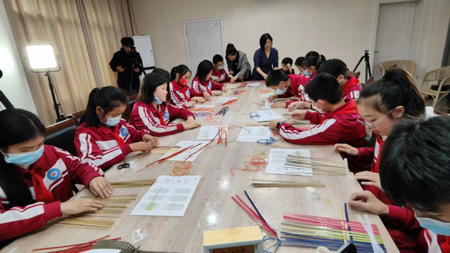 随后,刘海燕向海外及现场学生详细讲解了竹编工艺品的制作流程、方法、文化内涵,介绍刘氏竹编用竹丝编织书法、山水、花鸟、人物形成的一件件精美珍贵的中国竹文化作品,并指导录播现场的同学们亲手编制了竹编作品——竹编小舟。