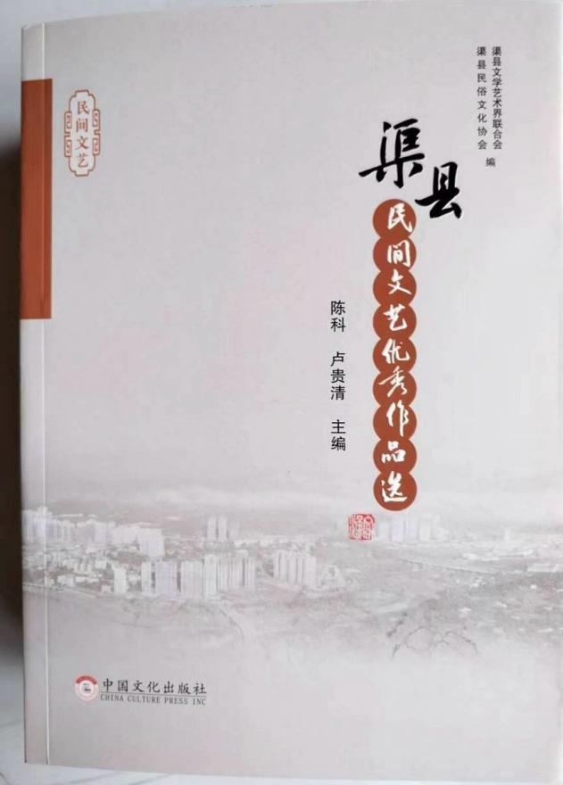《渠县民间文艺优秀作品选》近日由中国文化出版社正式出版与读者见面了。该书由渠县文学艺术界联合会、渠县民俗文化协会联袂推出,由陈科、卢贵清主编,渠县县委宣传部原副部长,社科联原副主席郑六秋为该书作序。本书选编的渠县民间文艺优秀作品,系2018年7月至2022年6月,在市级及以上报纸杂志及相关公众号刊发的原创作品。分为“散文随记”“小说故事”“诗词曲赋”“民间曲艺”“民间歌曲”五个篇章。入选作品,以不同的手法,记录反映儿时记忆、乡村烟火、亲情友情、家风家训、家庭和睦、尊老爱幼、邻里友善、民俗民风、风物名胜、人文史志等等。这些有着浓厚民间习俗、彰显着地域特色的作品,凸显出“阙里賨都·忘忧渠县”的独特风格。无论是格律诗词、传统曲赋、散文小说,还是山歌民谣、神话故事、传奇趣闻、方言俚语、村巷闲话等,都透视出作者深邃敏捷的思维与幽默风趣的表达。原汁原味民间作品,听得见渠江的水声,看得见宕渠的乡愁,为渠县打造全门国巴文化创新融合发展高地增添了一抹光华,受到读者亲睐。